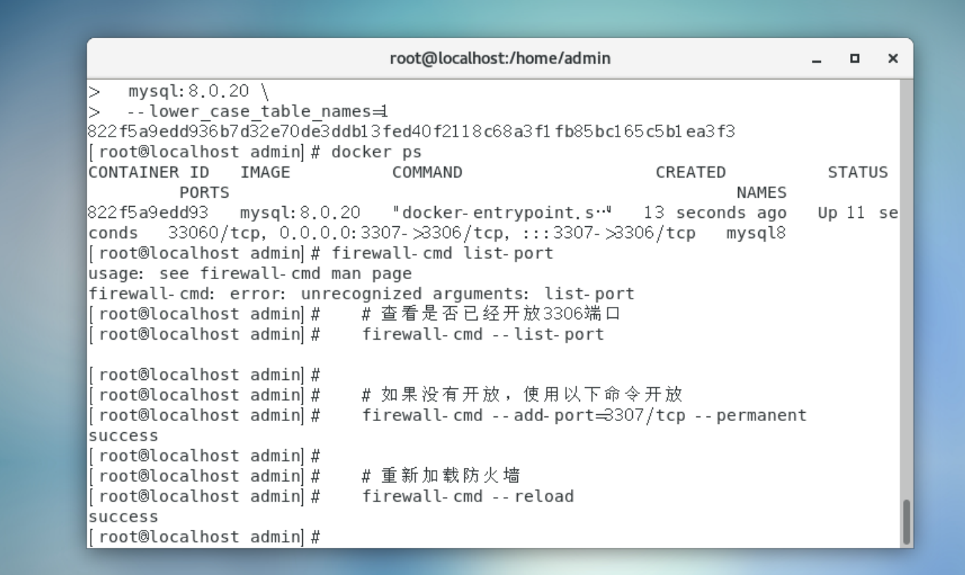 4. 查看是否已经开放3307端口,配置防火墙