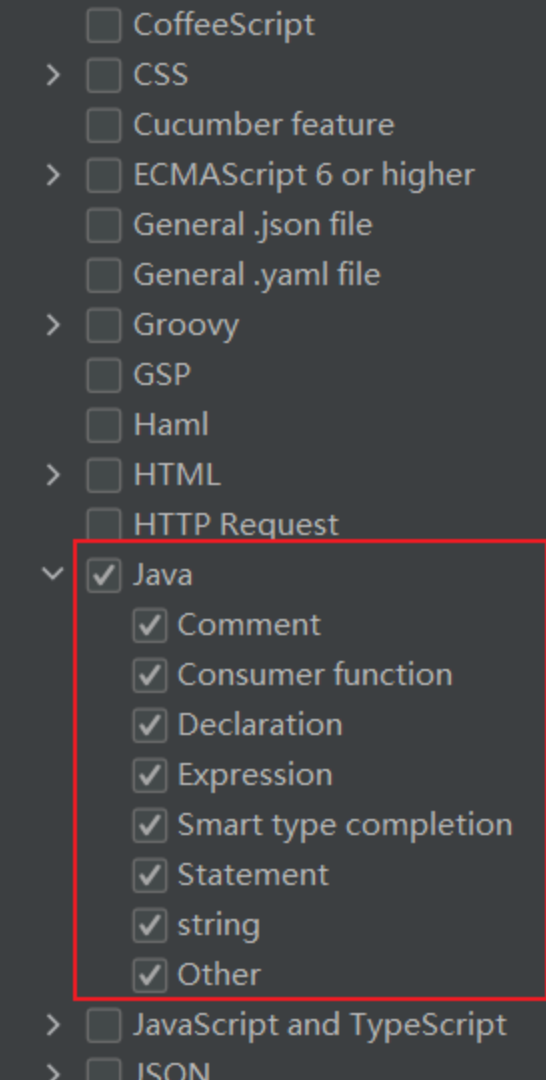 点击模板页面最下方的警告,来设置将模板应用于那些场景,一般选择EveryWhere-->Java即可