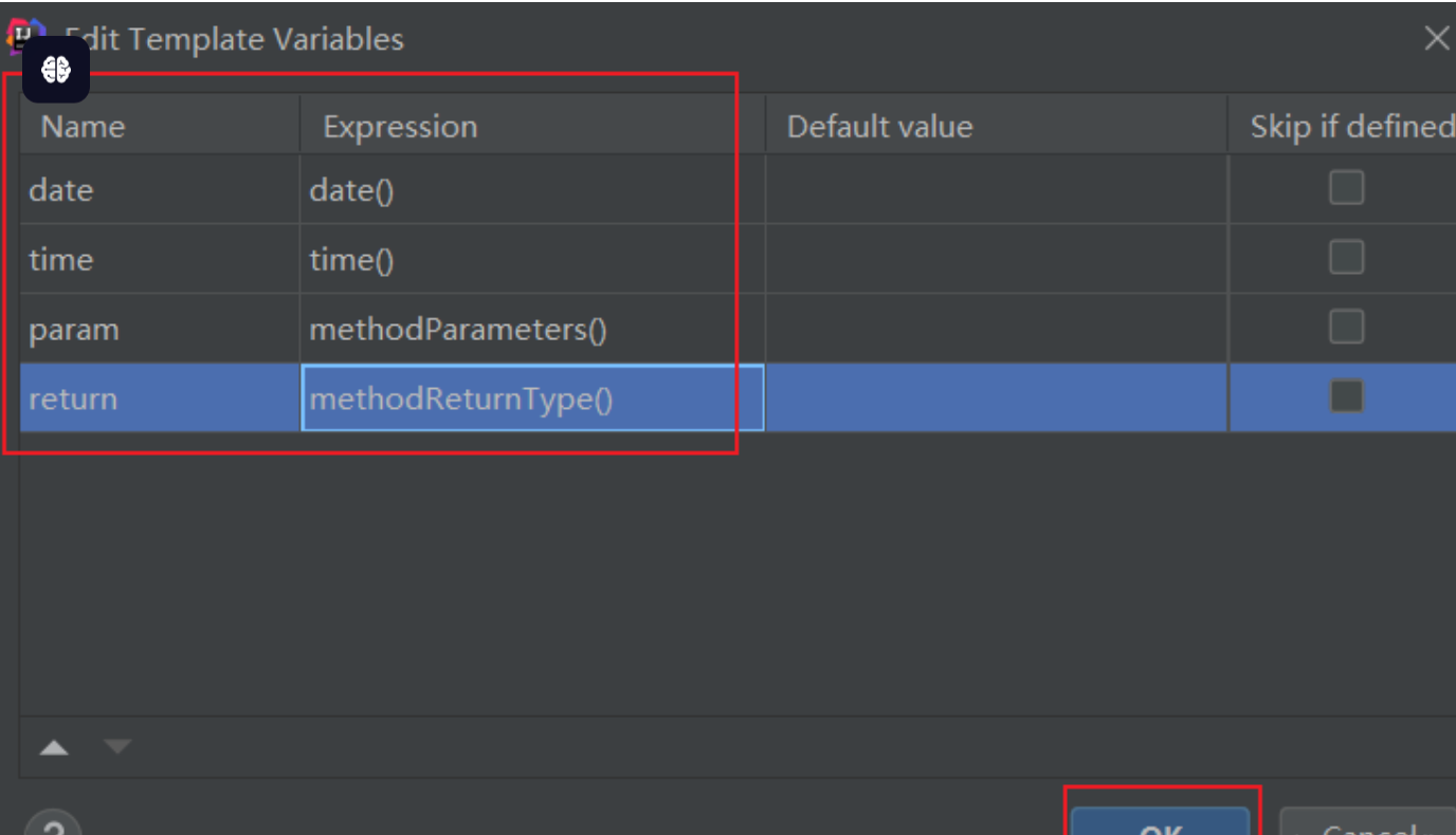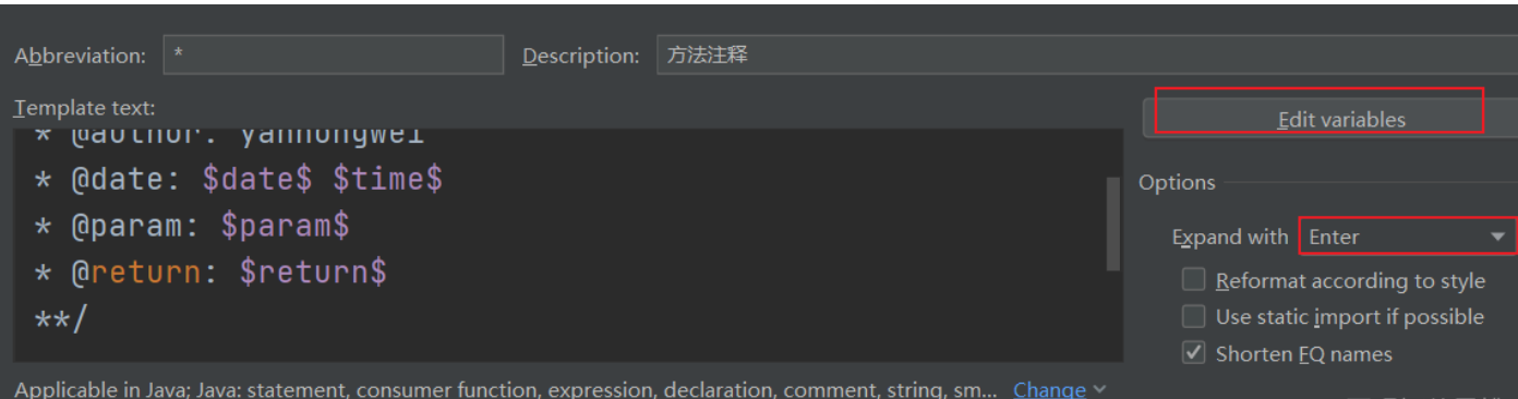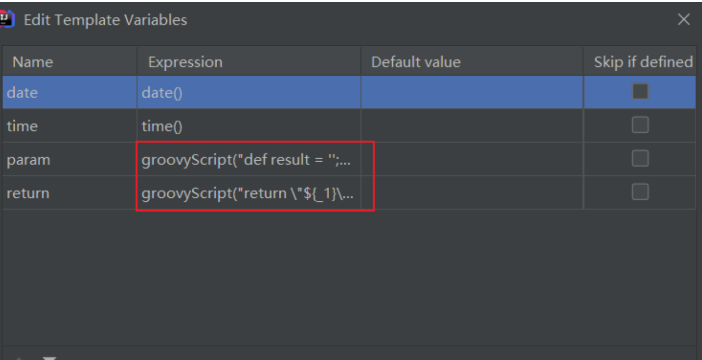 1、IDEA格式的模板只需要为每个参数选择对应的方法即可