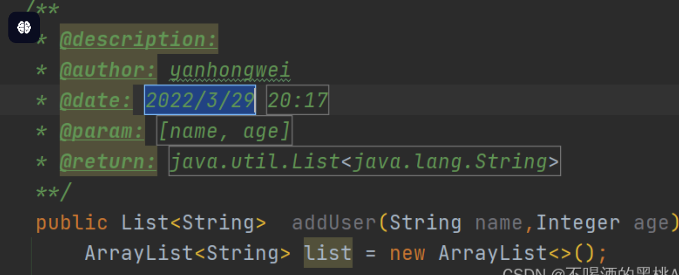 (3)@Author:作者姓名(可以写死,写成你的名字)