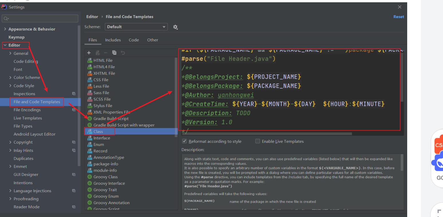 2、设置模板内容-IDEA格式模板