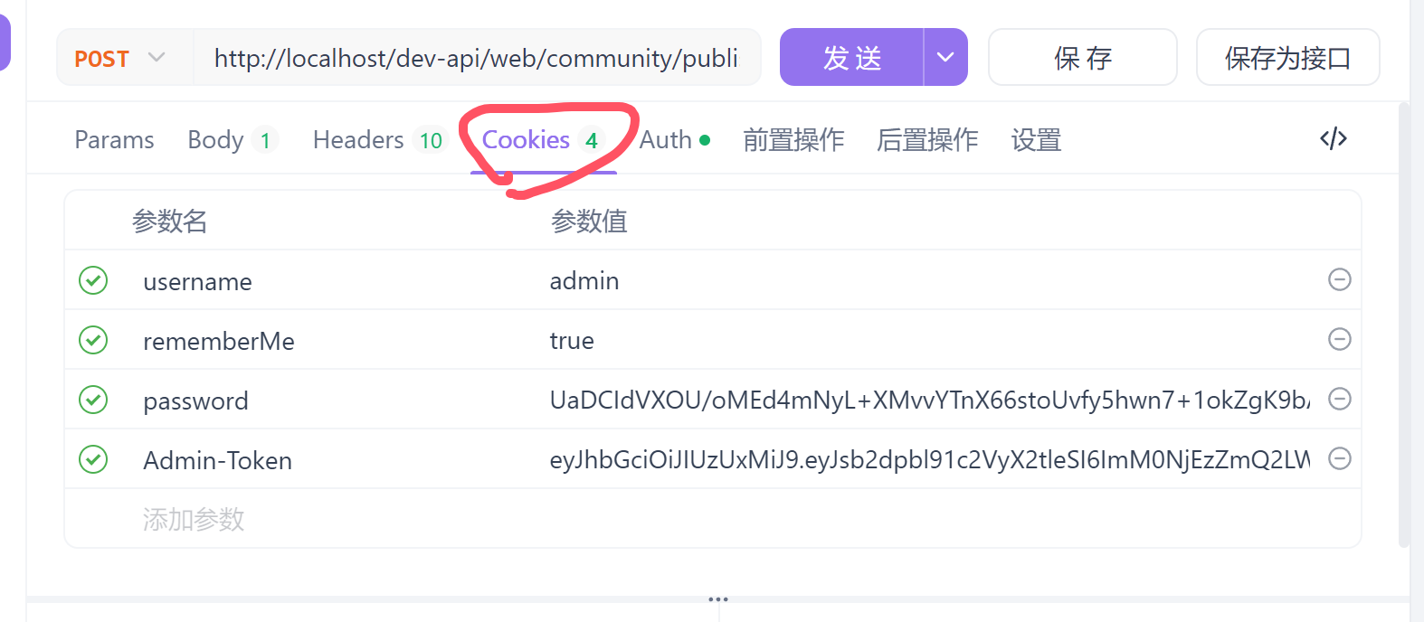 username=admin; rememberMe=true; password=...; Admin-Token=...